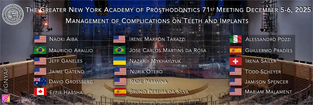 It is with great pleasure that I extend a personal invitation for you to attend the 71st Annual Scientific Meeting of The Greater New York Academy of Prosthodontics. This highly anticipated event will take place at the Jazz at Lincoln Center’s Frederick P. Rose Hall, an iconic venue in the heart of New York City. Dr. Stephen Chu and his Program Committee have gathered a group of thought leaders and innovators that will showcase groundbreaking research, cutting edge technological advancements and thought-provoking discussions. Attendees will have the opportunity to engage in high-level scientific sessions and exclusive networking events organized by Dr. Dan Kerrigan and the Fall Arrangements Committee. Beyond the academic excellence, the vibrant energy of New York City provides the perfect backdrop for this exceptional event. From world-class dining to shopping and cultural activities, the city offers an unforgettable experience for our esteemed guests during the holiday season. I truly hope you will join us for this unparalleled opportunity to collaborate, learn, and advance the future of Prosthodontics. I look forward to welcoming you to what promises to be an extraordinary and transformative event.